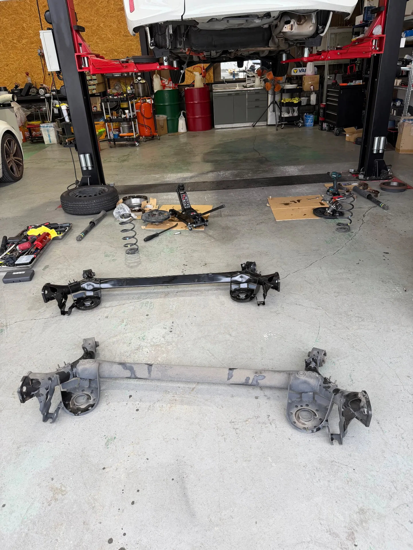 アクスルビーム、ハブ、ブレーキ類ごっそり交換。